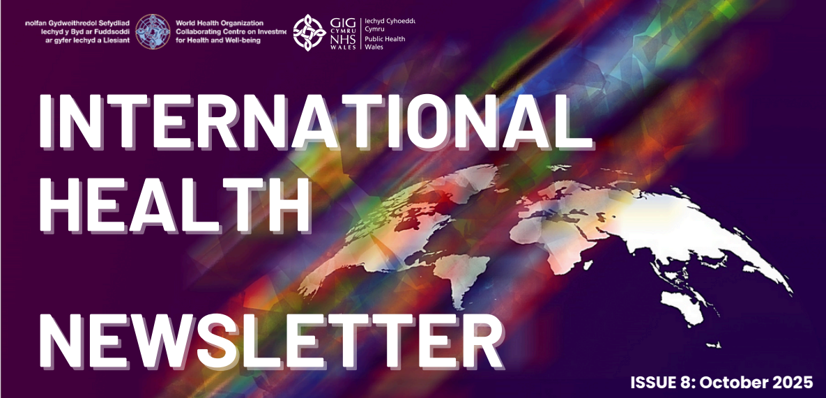 The International Health Newsletter is a key activity of Public Health Wales’ International Health Strategy, which is an enabler of Public Health Wales’ Long-Term Strategy. The newsletter serves to connect Welsh health professionals, educators, and communities with international health learning, networks, and partnerships, sharing best practices, resources, and opportunities that can strengthen skills and systems across Wales and internationally. The newsletter also showcases Wales’ contributions to global health and reinforces Wales’ role as a globally responsible nation committed to improving health and well-being for all.